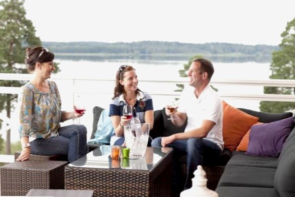 Du kan träna i det lilla gymmet, bada bastu eller koppla av på Såstaholms terrass, där du dessutom har sjöutsikt.